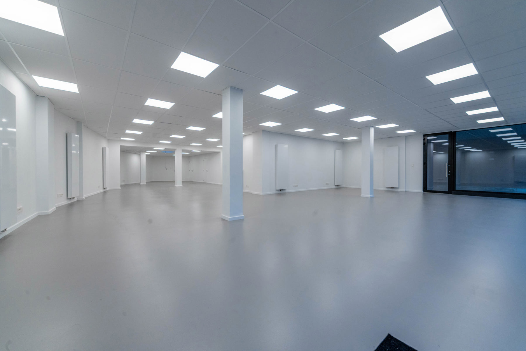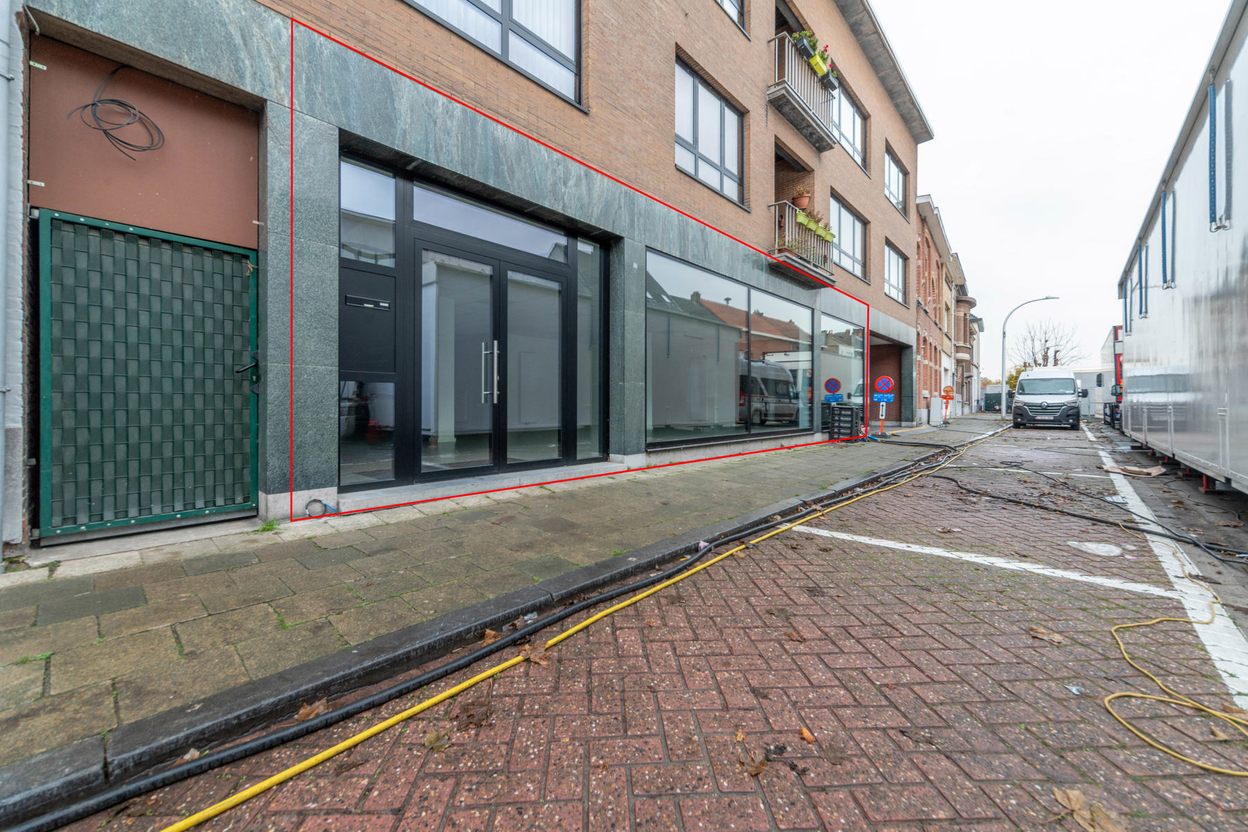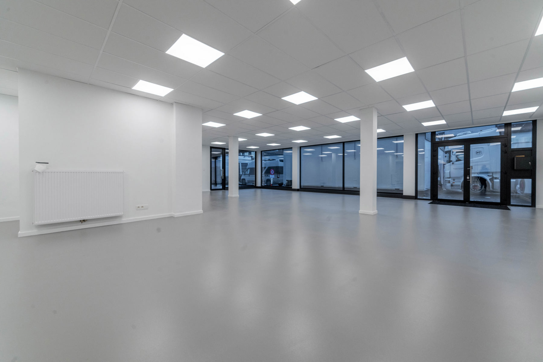 Dankzij de twee inkomdeuren alsook de open ruimte kan u zelf de geschikte indeling bepalen voor uw activiteit.