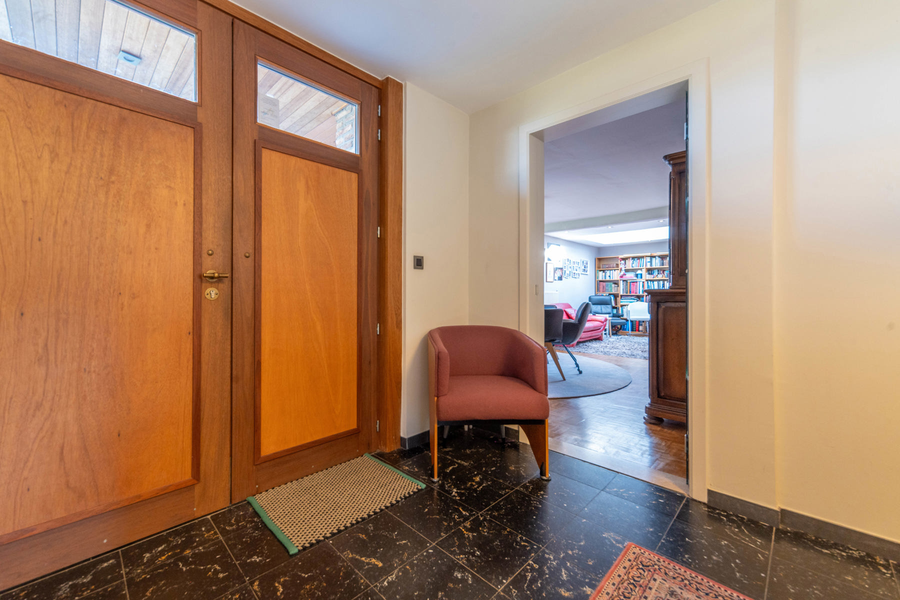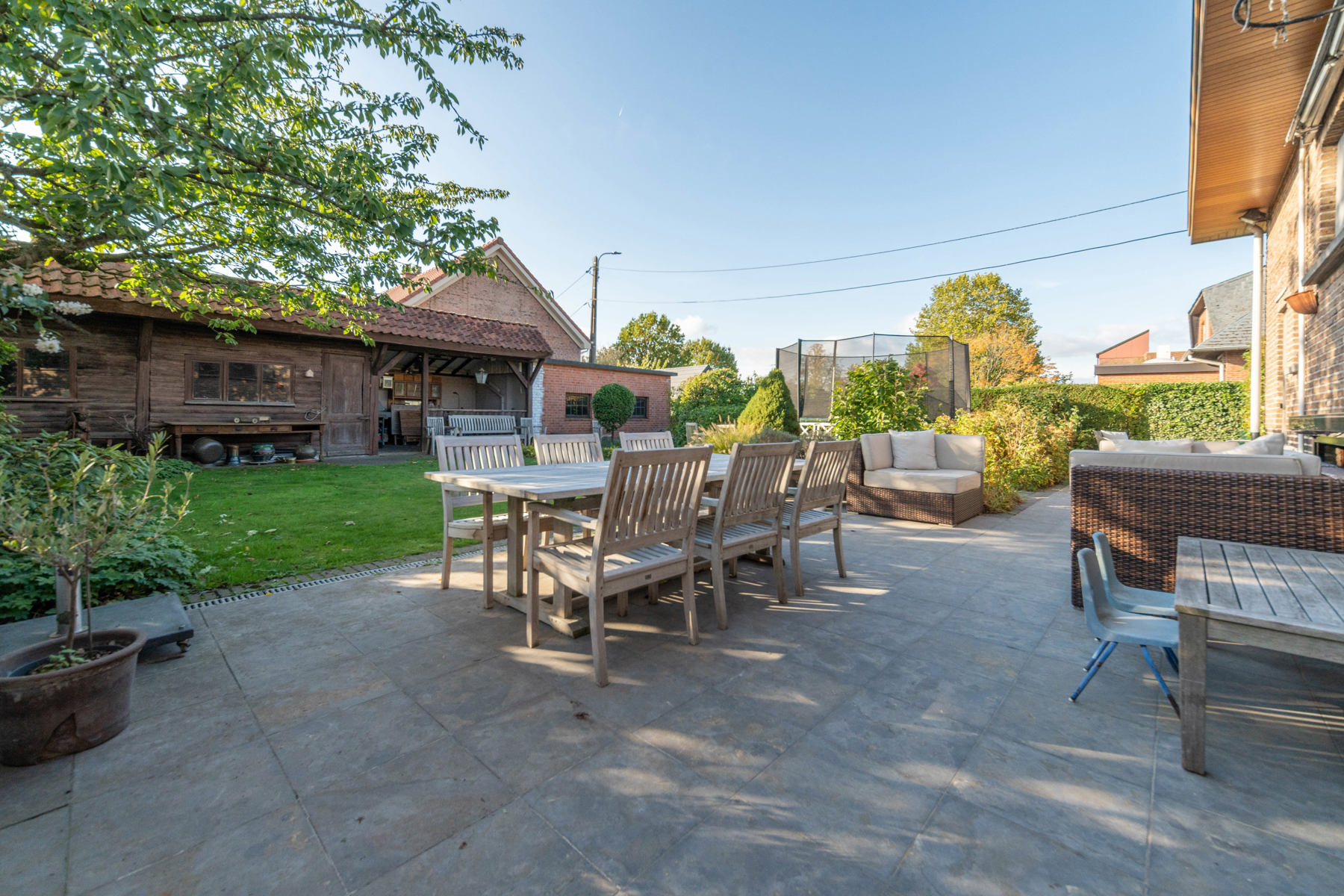 Bij het betreden van de woning kom je in een ruime inkomhal met gastentoilet, die leidt naar een lichtrijke leefruimte met grote raampartijen en directe verbinding met de volledig ingerichte keuken met hoogwaardige toestellen.