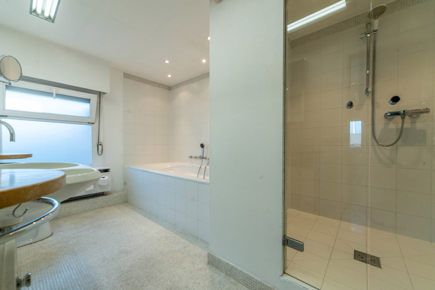 Dankzij de slimme split-levelindeling vind je op de lagergelegen verdieping nog drie volwaardige slaapkamers, een saunaruimte (eventueel in te richten als extra slaapkamer), een wijnkelder, een bureauruimte, een badkamer met douche, drie lavabo’s en toilet, een praktische wasberging en nog een apart gastentoilet.