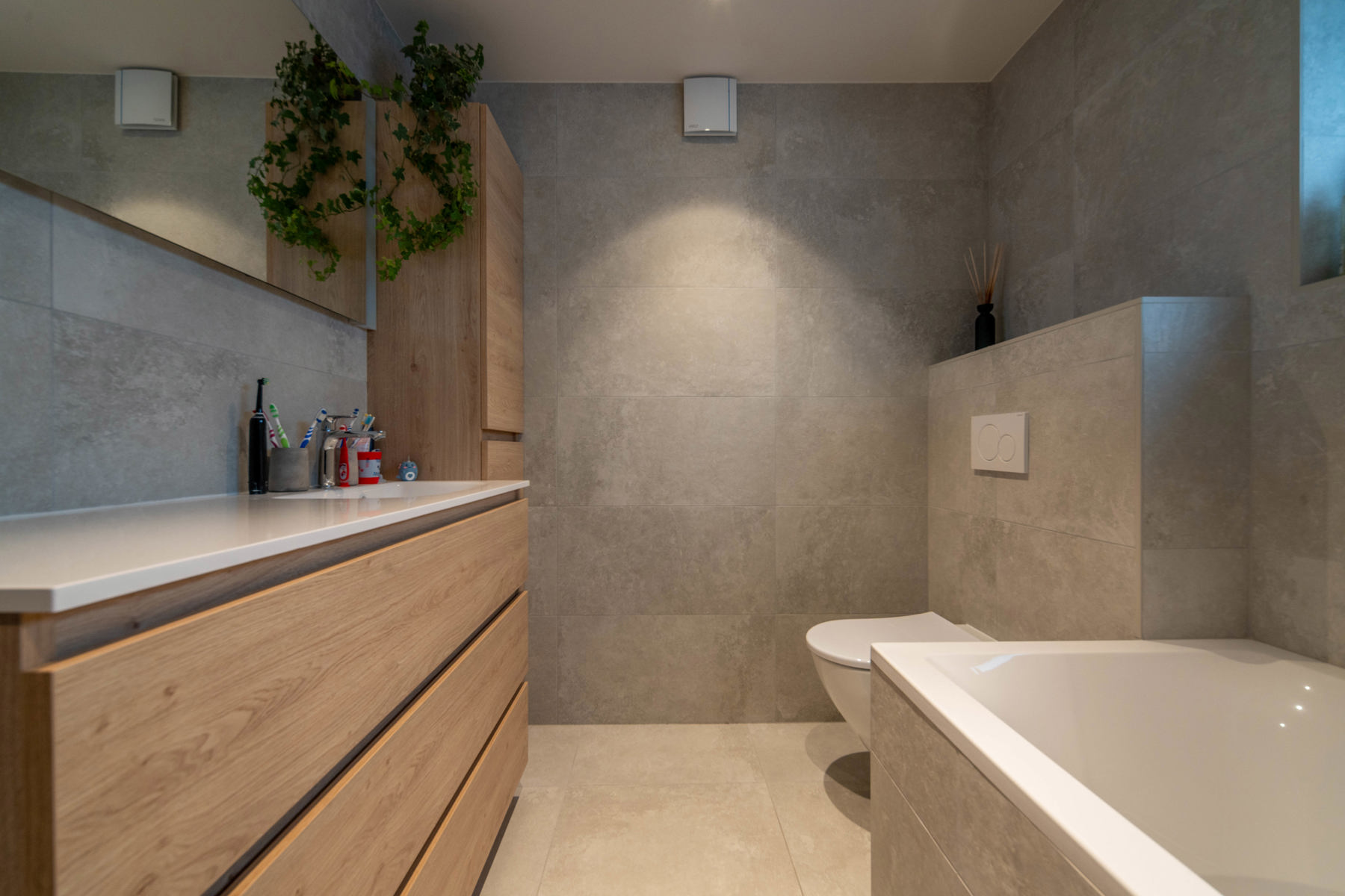 Op de eerste verdieping beschikt de woning over drie slaapkamers (13,5m²-12,5m² en 7,5m²) en een moderne badkamer met ligbad, lavabo en een toilet. Een vierde slaapkamer (22m²) bevindt zicht op de afgewerkte zolderverdieping.