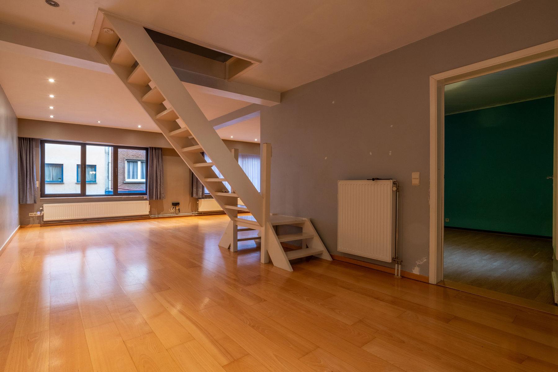 Via een gemeenschappelijke inkomhal bereik je het bovenliggende duplex-appartement.